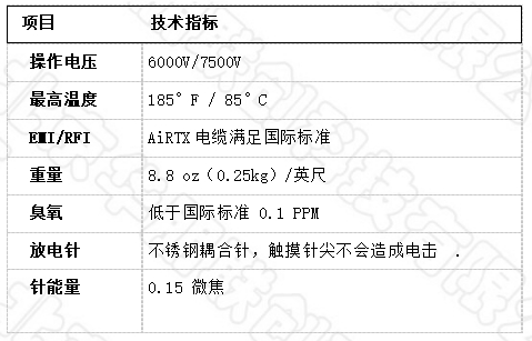 Airtx55000系列離子棒標配8英尺(2.4m)電纜,外殼為陽極鋁,不銹鋼發射針塑料本體,感應操作離子棒,放電針面一個指示燈顯示開/關運行。