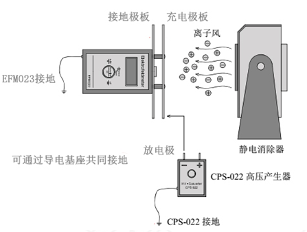 2.EFM022測試儀+CPS套件:檢測靜電消除器的離子平衡度和靜電衰減時間(1000V-100V)。
