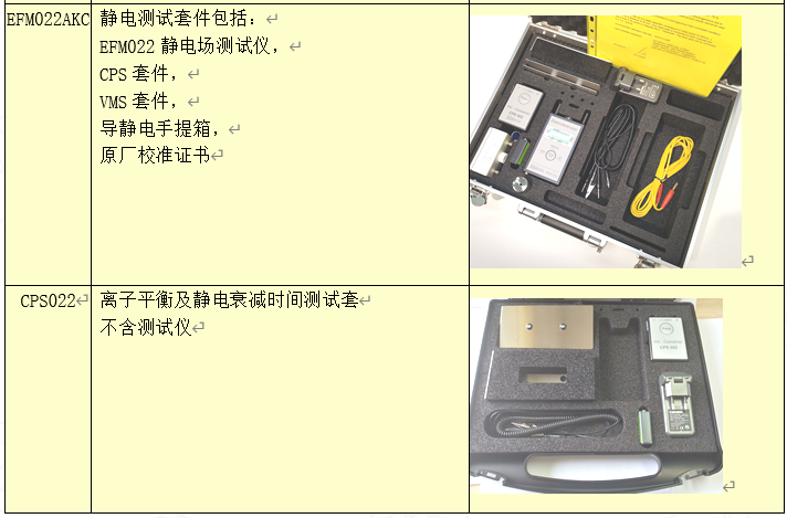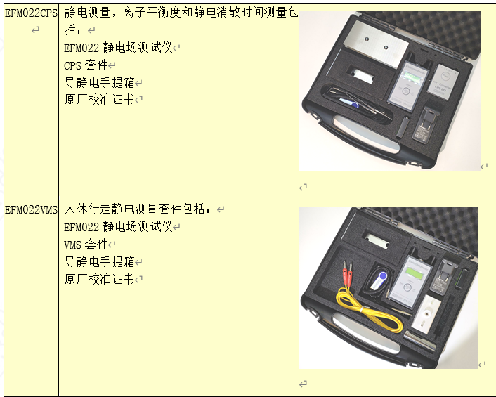 ·EFM022:靜電測量;選配CPS靜電消散時間及離子平衡測量;選配VMS人體靜電位測量。